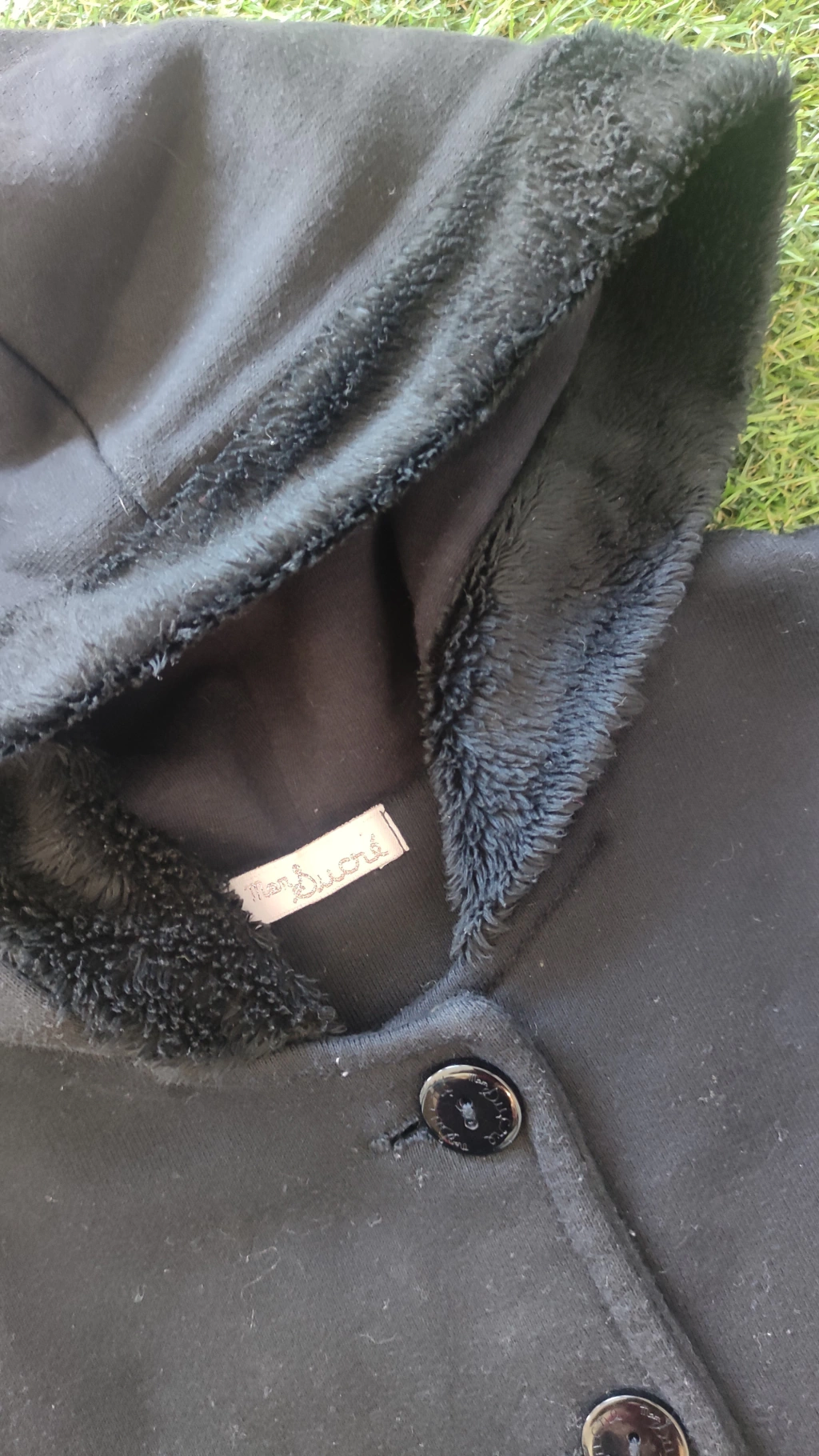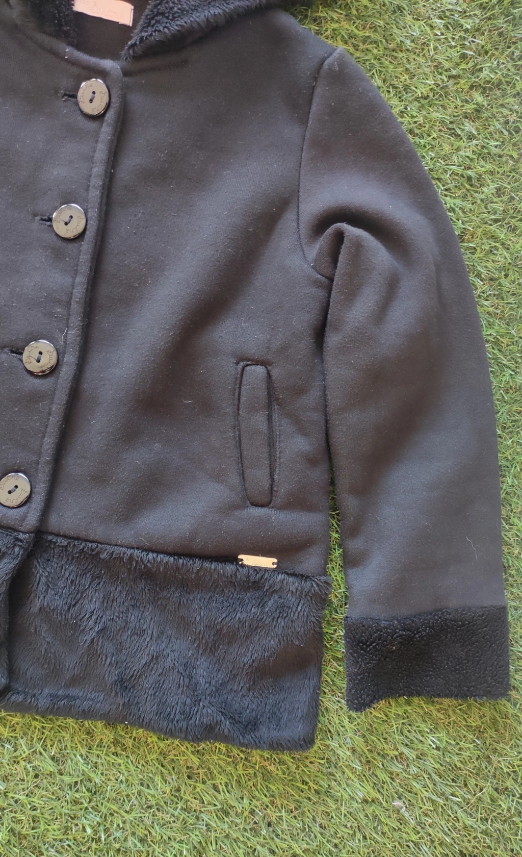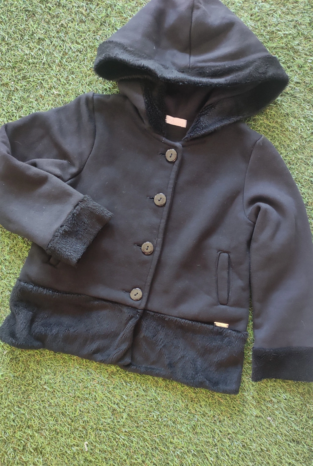 Casaco preto touca , detalhes pelos de botões tamanho 4 anos